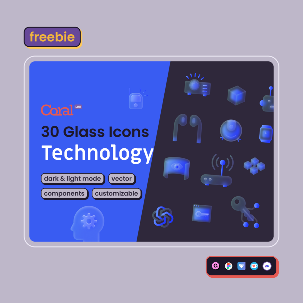The icon set for technology UI design with a twist of glassmorphism brought to you by Coral Lab!